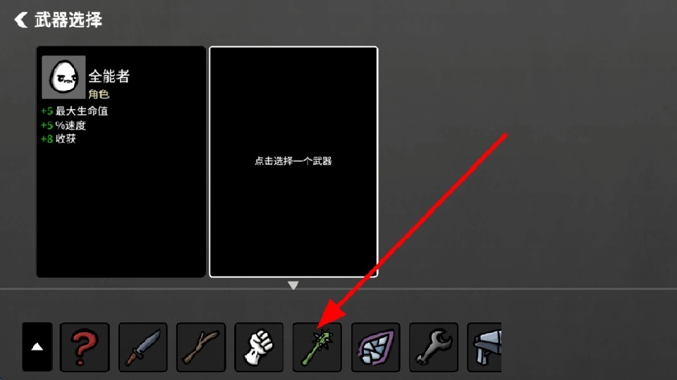 1、首先进入武器选择界面,这里有多种武器可供挑选,不同武器有不同特点,选好武器后,为后续战斗做好装备准备。