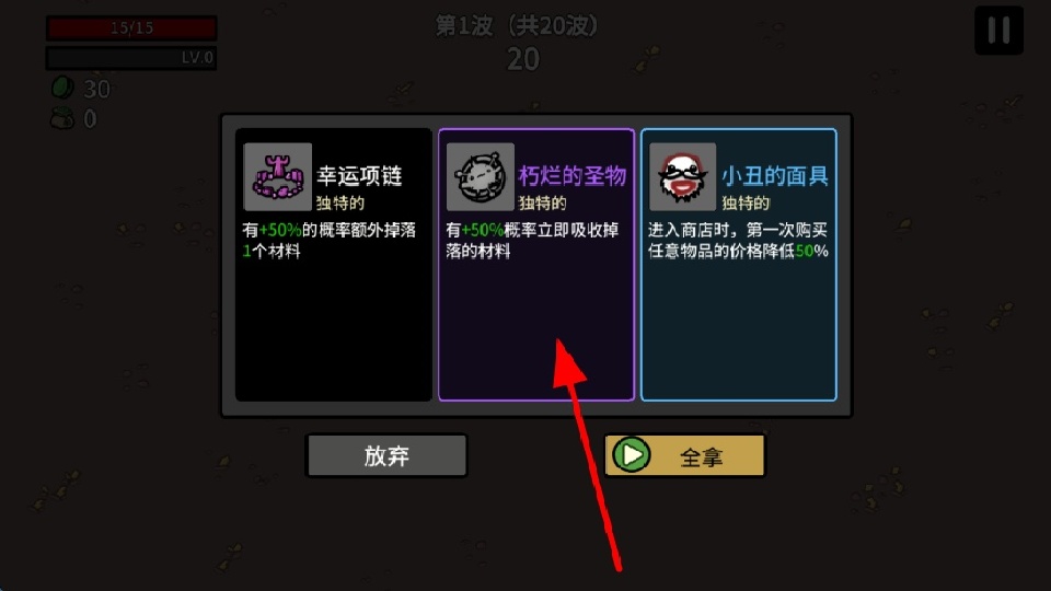 2、之后会出现道具选择界面,像幸运项链、朽烂的圣物、小丑的面具等道具,各有不同效果,挑选合适的道具。