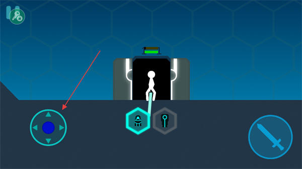 1、使用左侧虚拟摇杆操控火柴人移动,从初始区域出发,探索关卡。