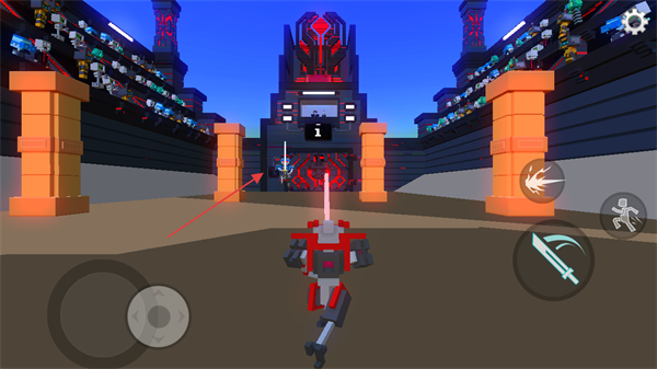 1、通过左侧摇杆控制机器人移动,右侧按钮使用武器和技能,在角斗场中与敌人战斗。