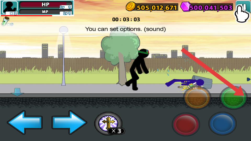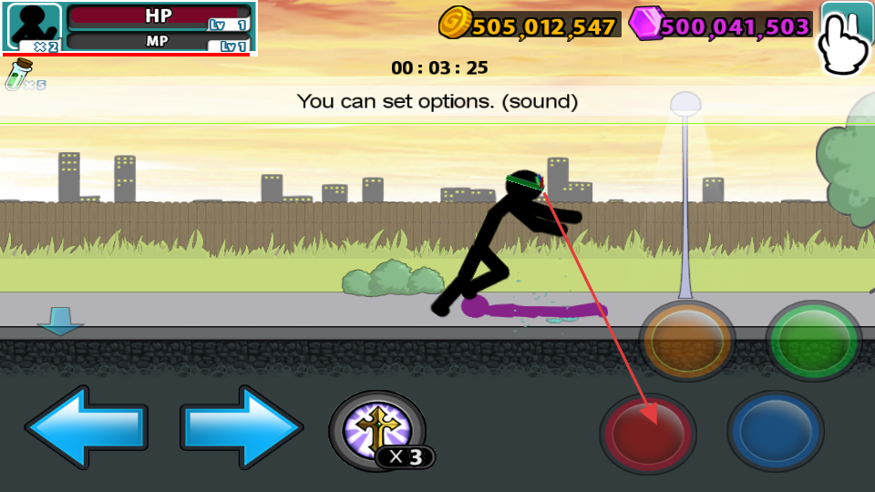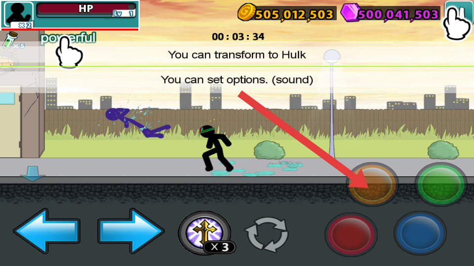 1、进入城市街道场景后,先熟悉基础操作:左侧方向键控制火柴人左右移动,右侧拳腿按键分别对应近战攻击。