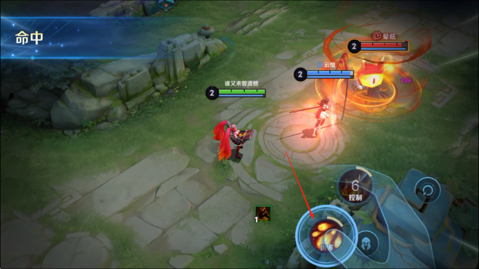 2、与敌方英雄遭遇时,根据英雄技能特点,点击技能释放按钮,如带有控制效果的技能,命中敌方英雄后,可限制其行动,配合普通攻击打出伤害。