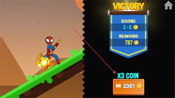 4、击败敌方后,查看VICTORY界面,获取分数和金币奖励,可选择三倍金币奖励提升收益。