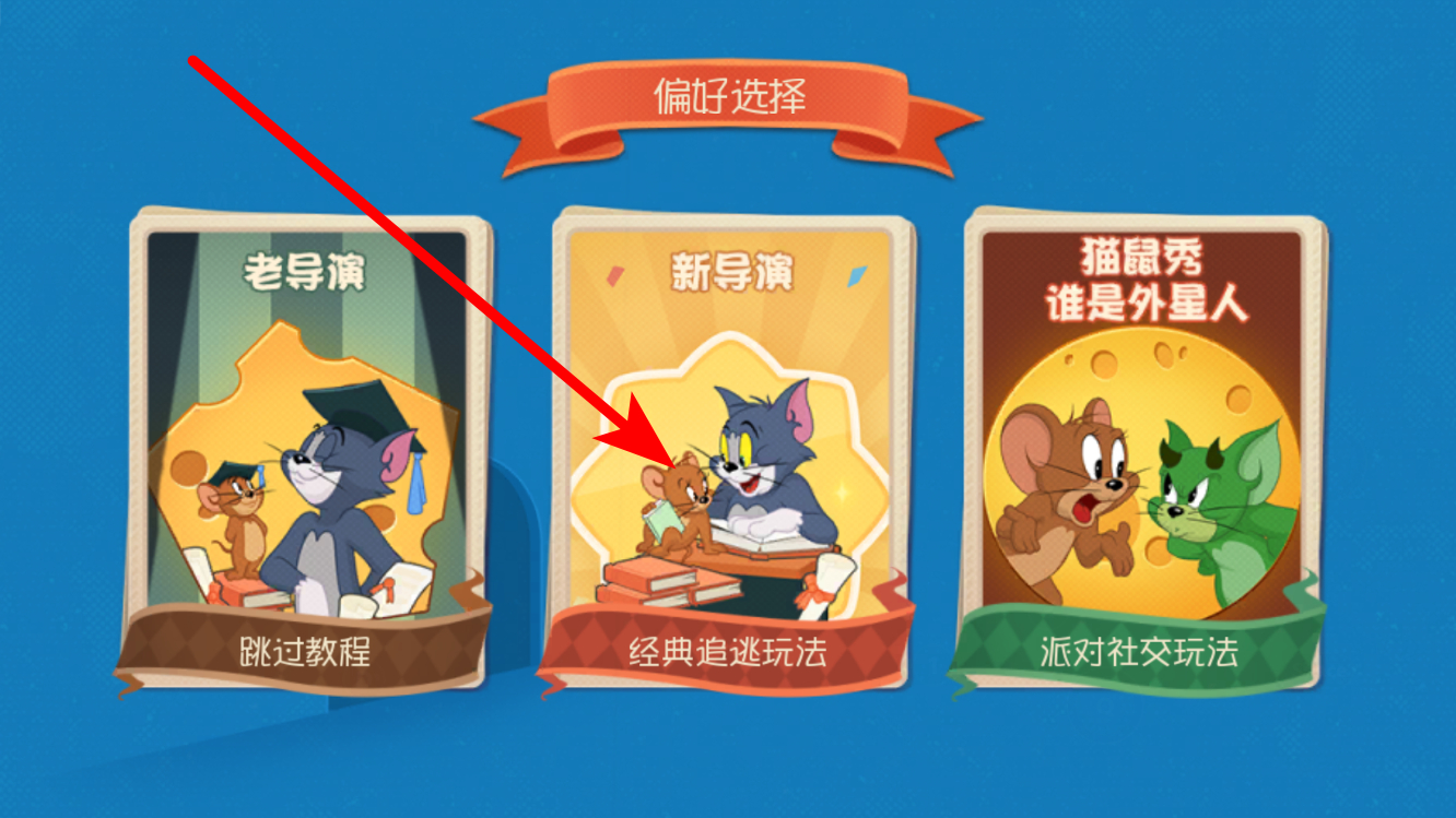 2、接下来选择,有老导演新导演猫鼠秀谁是外星人等选项,若想体验经典的猫鼠追逃,可选择新导演对应的经典追逃玩法,进入相应模式。