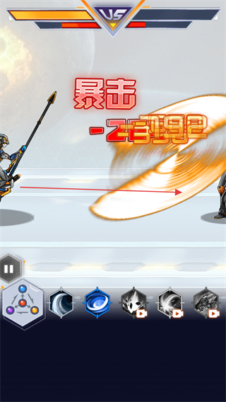 1、选择技能,操控机甲战士发起飞戟攻击,对敌方机甲造成伤害。