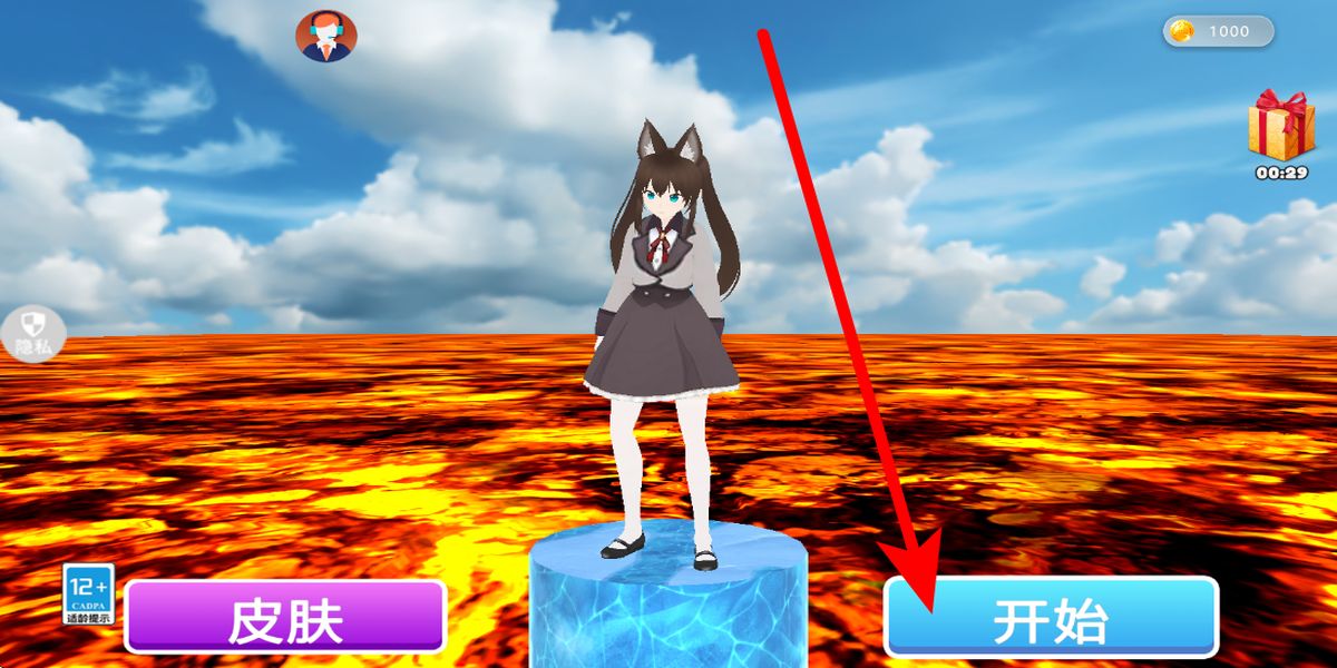 1、打开游戏应用后,点击开始,即可开启竞速之旅,进入到相关场景中,准备操控角色进行移动,为后续竞速挑战做好初始准备。