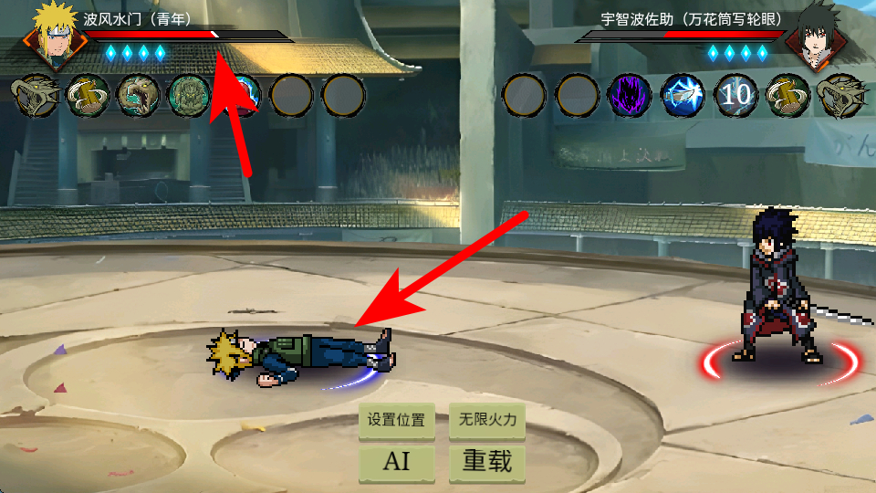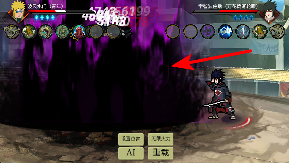 2、进入对战点击技能栏中的对应忍术如宇智波佐助的技能,向对手释放技能造成伤害,这是对战的核心操作,通过释放技能消耗对手血量,推进对战节奏。