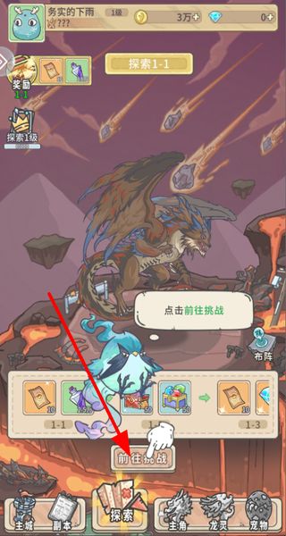 2、点击前往挑战按钮,参与探索关卡的战斗,获取资源和经验,提升角色等级,助力追妖冒险。