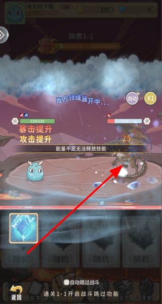 3、在战斗中使用技能攻击怪物,展开领域提升战力,击败敌人,推进关卡的通关进程。