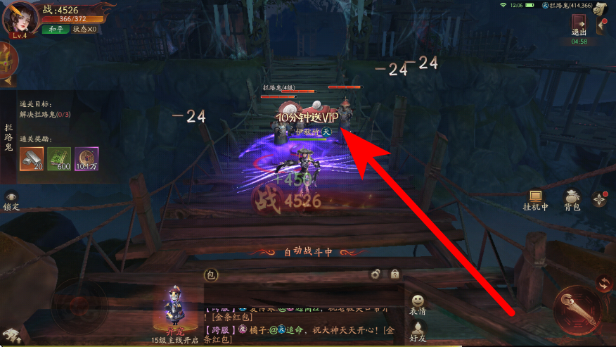 3、接着参与战斗,在遇到敌人时,角色会进入战斗状态,可利用自身技能与敌人交战,通过战斗获取经验、装备等奖励,增强角色战力。