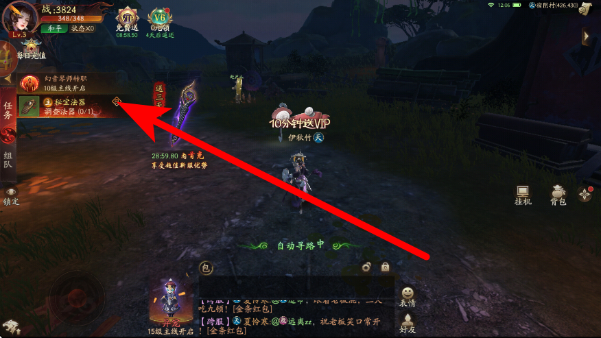 2、然后推进主线任务,在游戏中留意主线任务提示,跟随任务指引,前往指定地点、完成指定操作,推动剧情发展,提升角色实力。