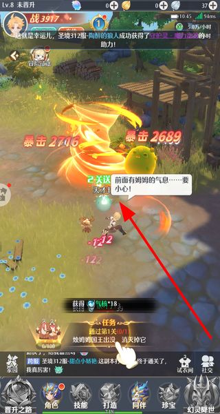 2、跟随主线任务指引完成挑战,点击领取对应的主线奖励,获取资源提升角色战力,稳步推进游戏进程。