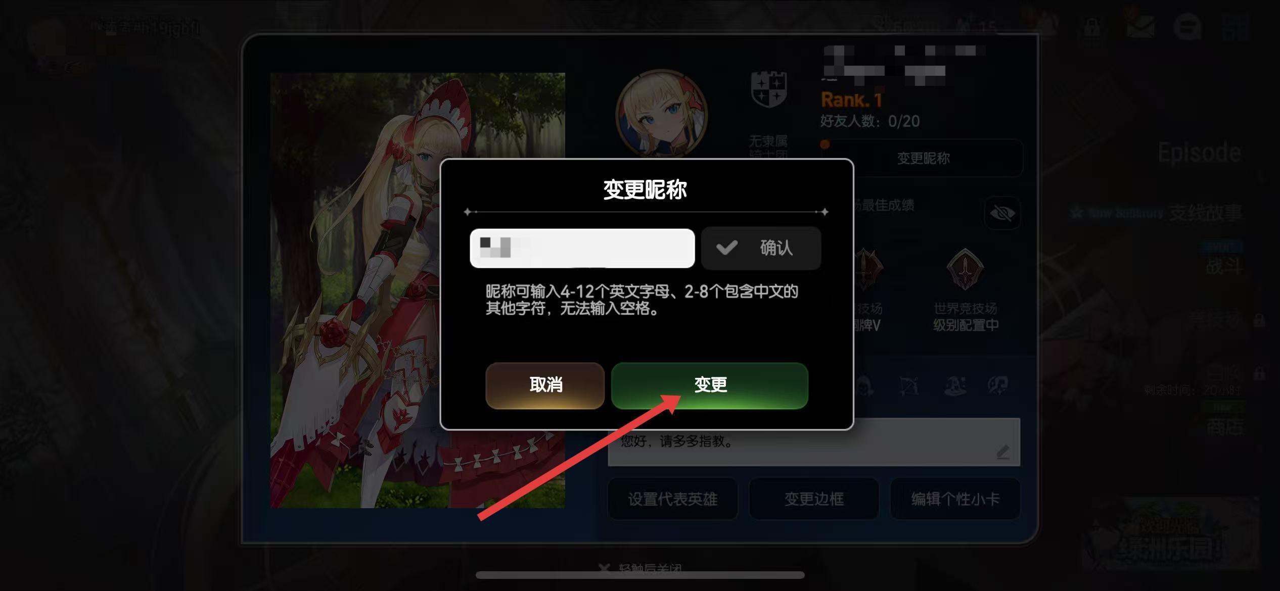 4、点击重复检查确认昵称是否可用,点击变更按钮,即可完成昵称修改。