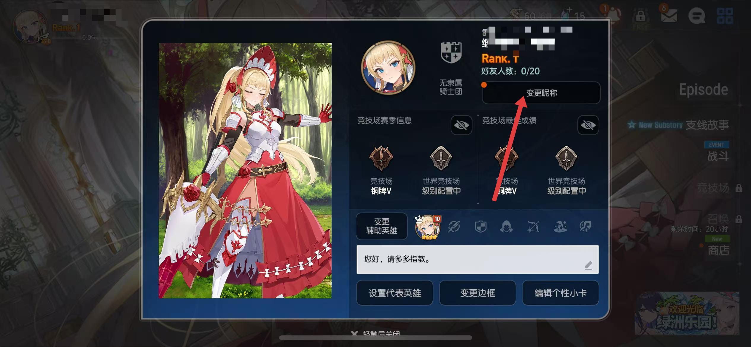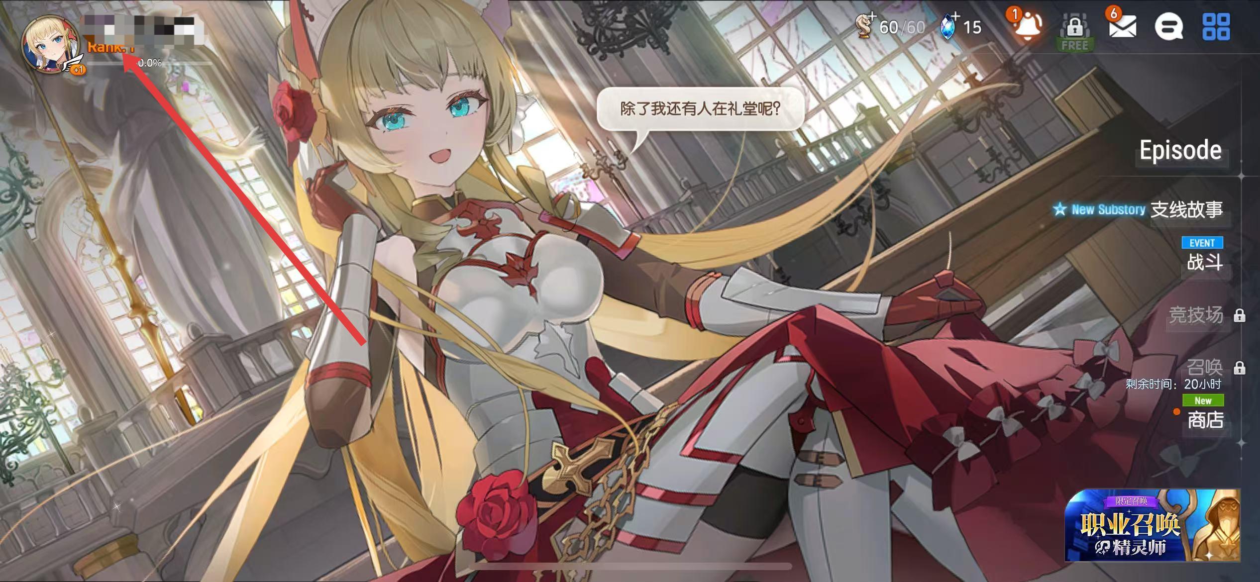 1、打开第七史诗游戏,进入游戏主界面,点击左上角的角色头像。