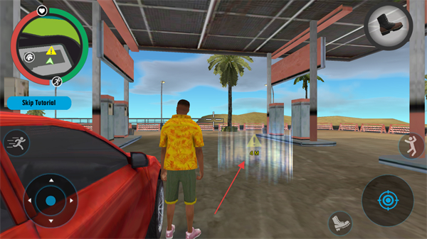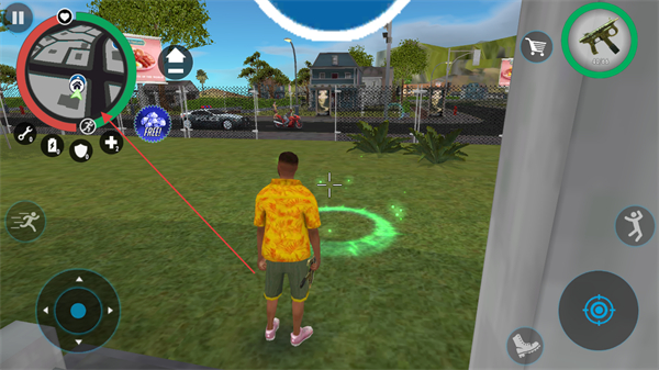 4、在地图中寻找绿色光圈等资源点,获取道具和资源,提升角色实力,同时完成各类黑帮犯罪任务。