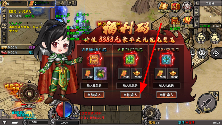 2、其中有福利码可使用,自动输入礼包码,能免费获得价值丰厚的豪华大礼包,礼包中的道具等奖励,可助力角色成长与冒险。