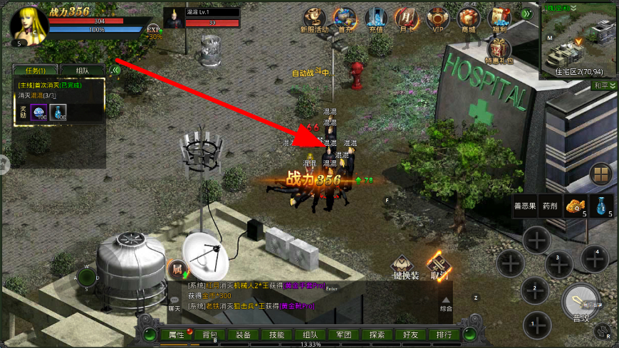 3、进入游戏场景后,会有任务指引,跟随任务提示,了解任务如消灭特定敌人等,推进任务进程,在完成任务过程中获取经验与奖励。