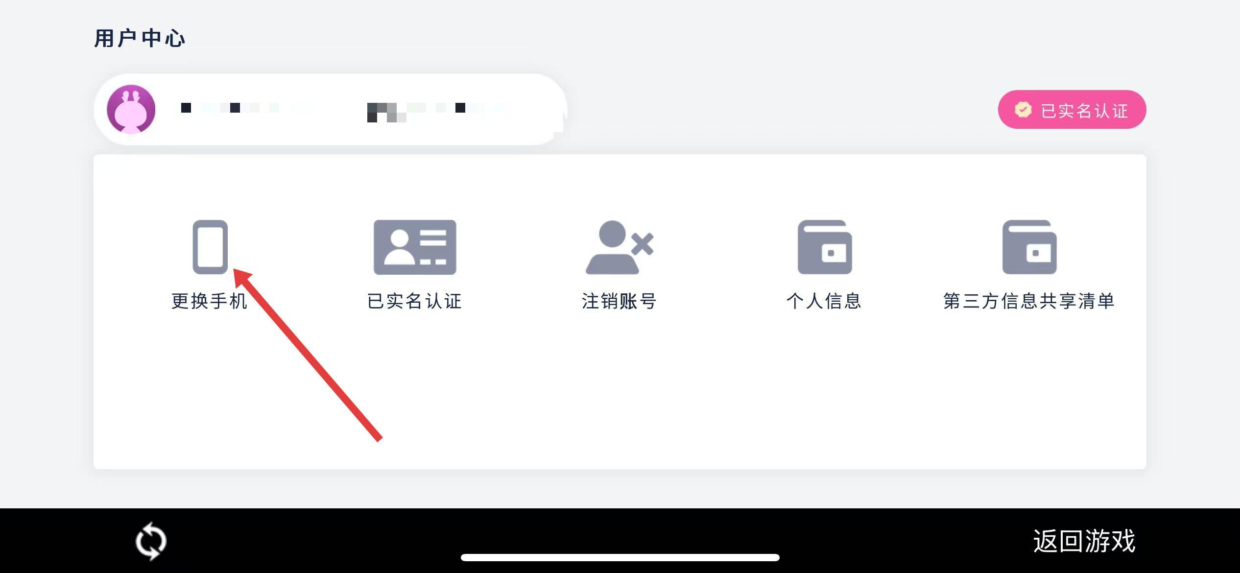 4、进入用户中心页面后,找到并点击更换手机选项。
