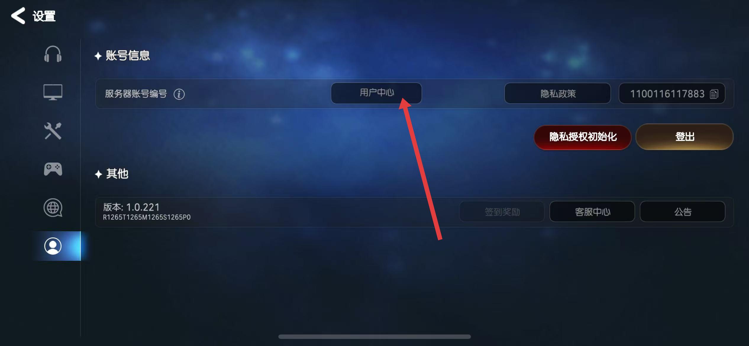 3、在设置界面中,找到账号信息板块,点击其中的用户中心按钮。