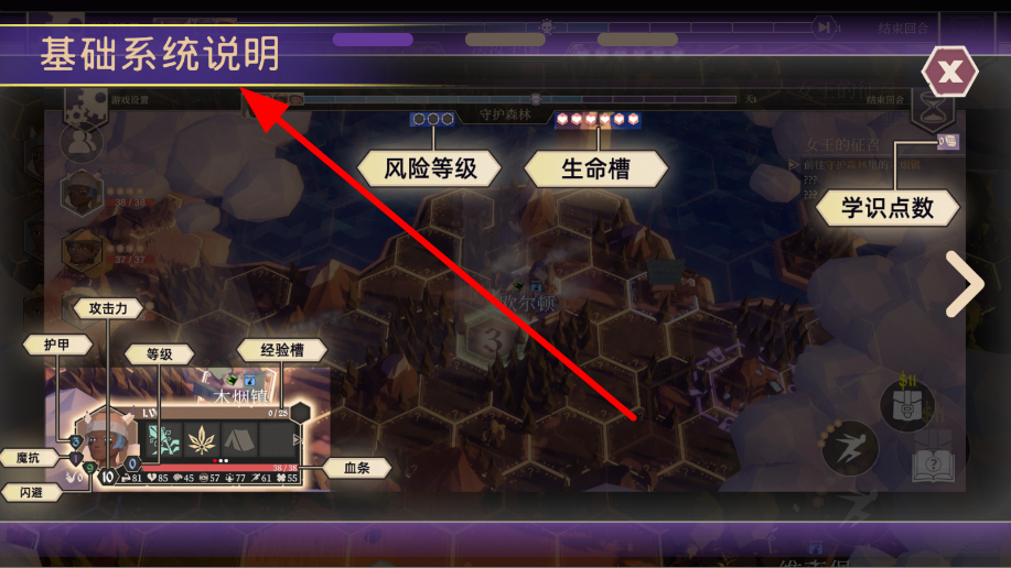 2、提供基础系统说明,其中包含风险等级、生命槽、学识点数等各类关键信息,仔细查看这些说明,能帮助玩家熟悉机制。