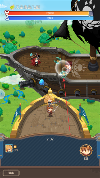 2、战斗中操控角色攻击天空海盗飞艇等敌人,注意敌人的血量条如天空海盗飞艇的血量,持续输出伤害。