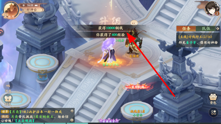 4、成功击败敌人后,会获得经验、铜钱等奖励,这些奖励可用于提升角色等级、强化装备等,助力角色在封神世界更好地冒险。