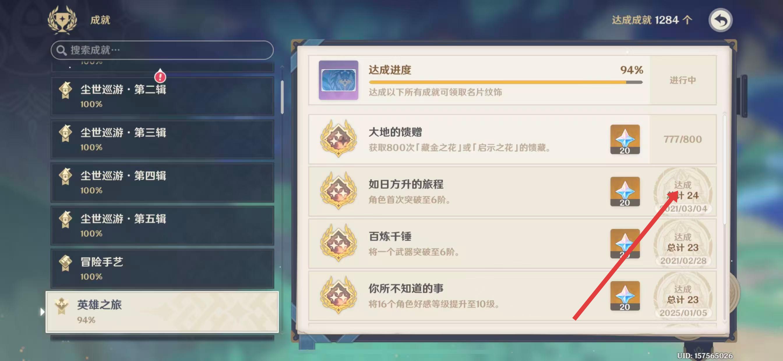 4、在成就详情页面中,部分成就的右侧会显示达成时间。