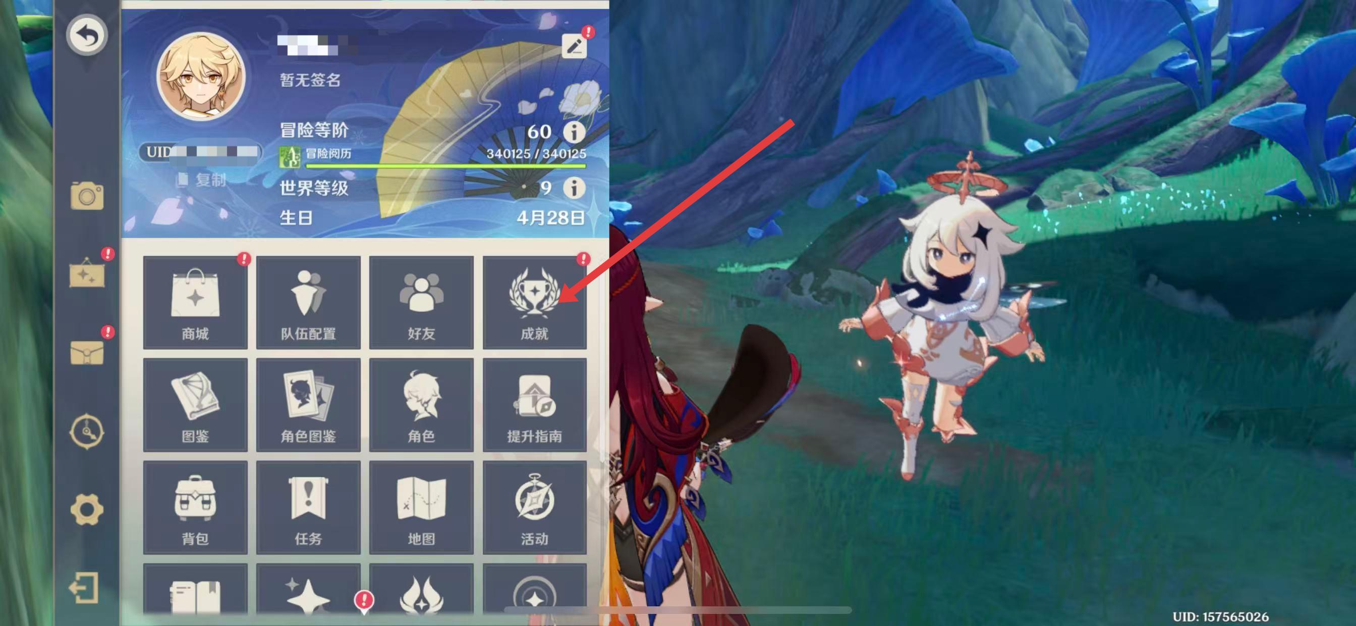 1、点击游戏界面左上角的派蒙头像,打开游戏菜单。