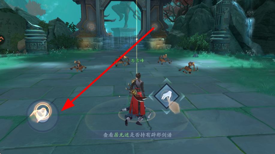 2、接着进入游戏场景,通过界面上的移动操作按钮,控制角色在场景中移动,前往任务地点,探索武侠世界的不同区域。