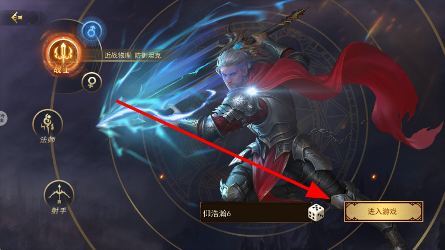 1、玩家开局,可选择不同职业,像近战物理防御的战士等,确定职业并设置好角色名称后,点击进入游戏,开启奇幻战斗之旅。