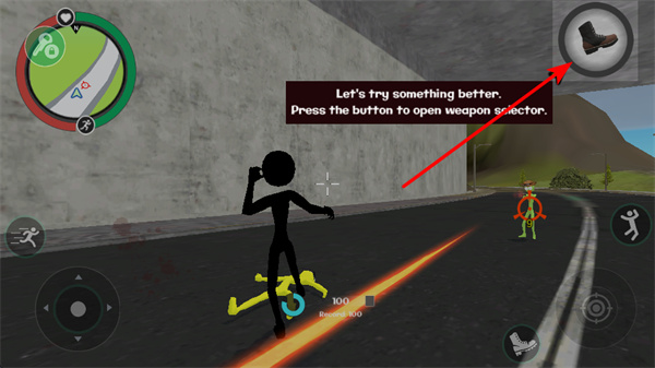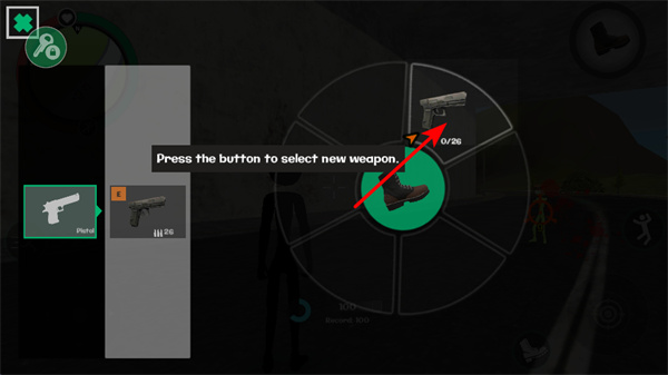 3、需要切换武器时,点击右上角武器选择按钮,这是打开武器轮盘的关键操作,打开后可根据战斗需求选择手枪等武器,适配不同战斗场景。