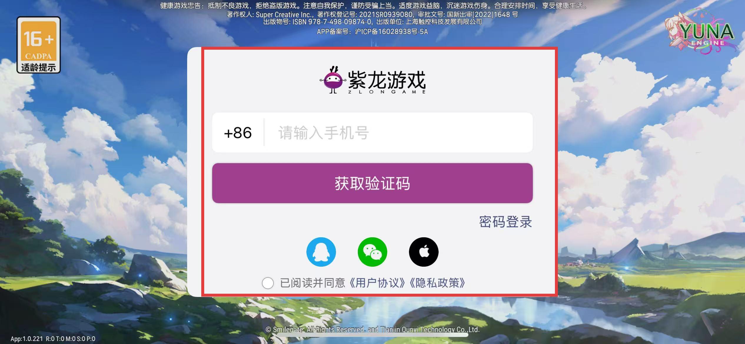 2、选择适合的登录注册方式,输入手机号,发送验证码