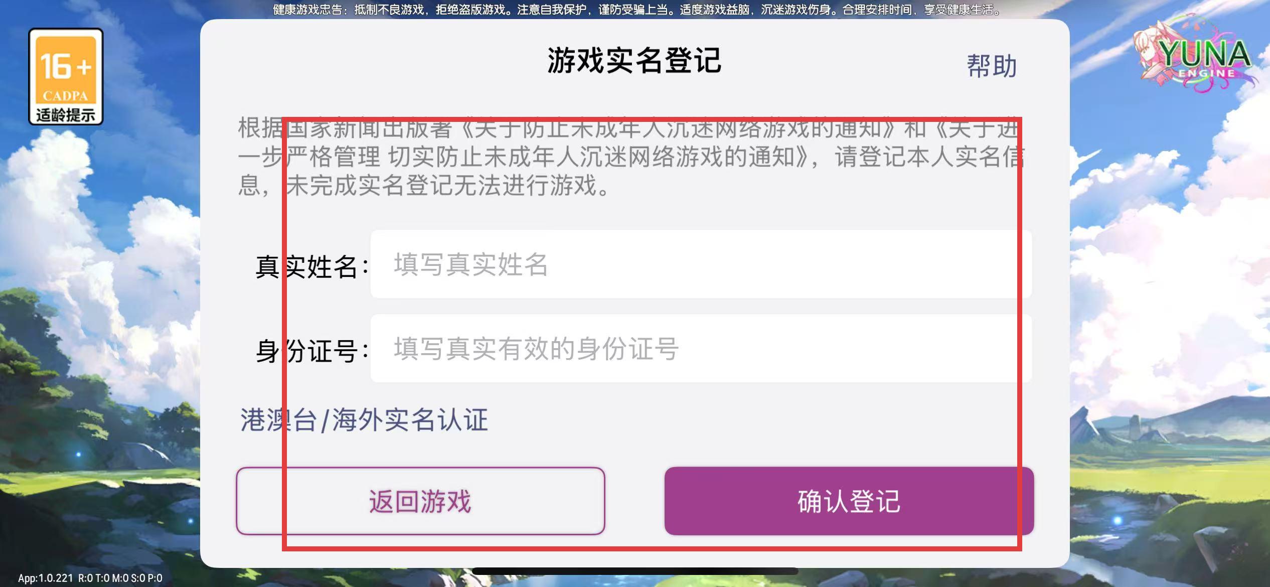 3、根据游戏引导进行下一步操作,填写实名信息。