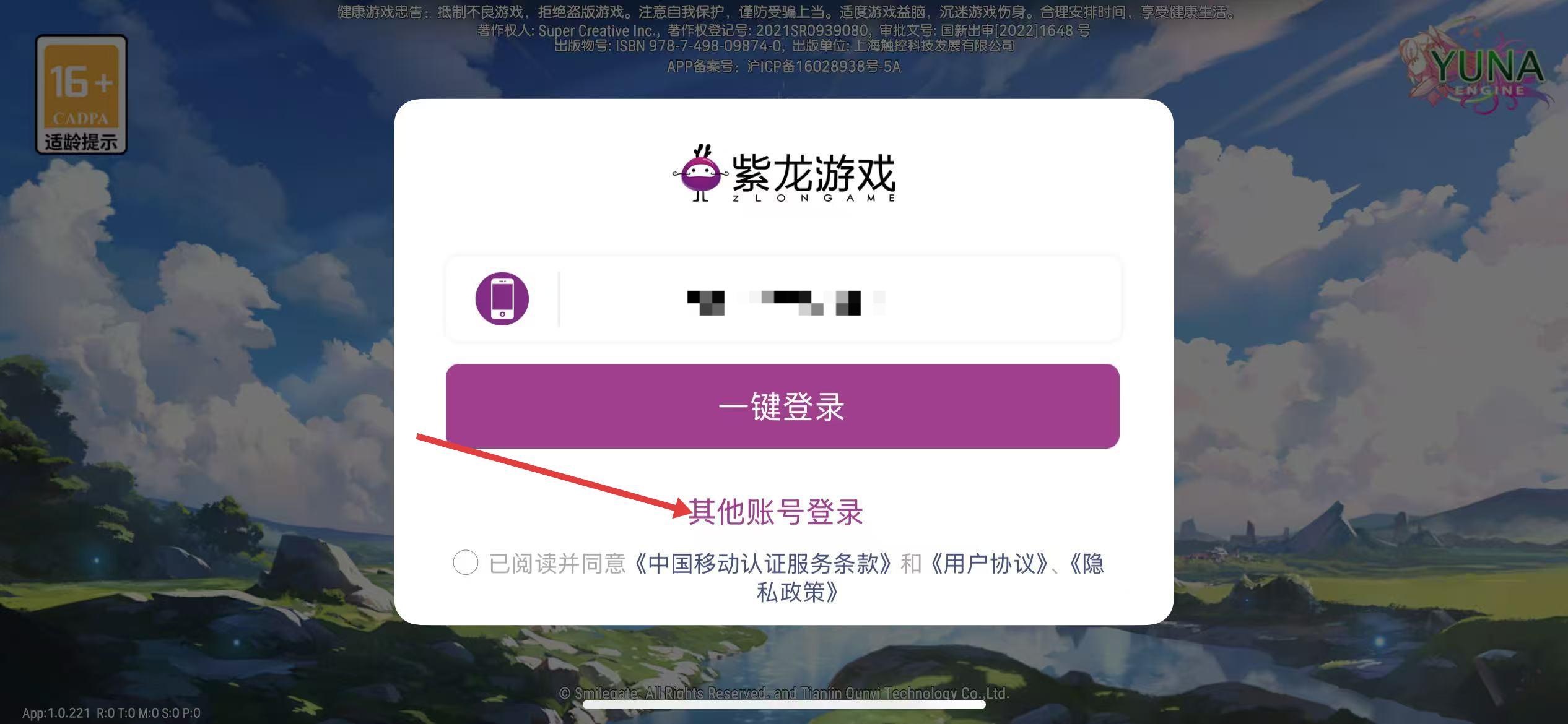 1、打开第七史诗游戏,进入登录界面,点击其他账号登录选项。