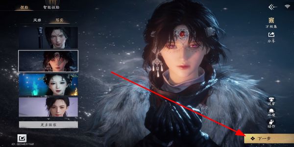 1、玩家在捏脸界面选择喜欢的面容样式,完成角色外观设置后点击下一步,进入燕云游戏世界。