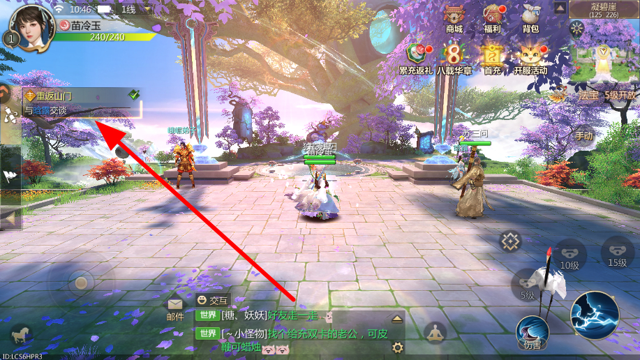 2、接着在游戏场景中,接取如重返山门等主线的任务,按照任务要求,与相应NPC交互或前往指定地点,推进任务的进行。