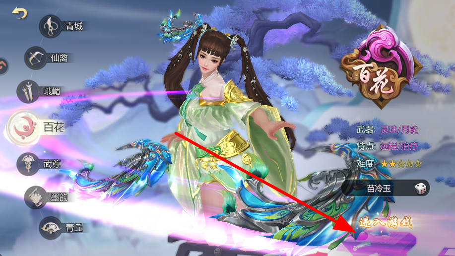 1、玩家开局创建职业选择,挑选百花等职业,选择好后点击进入游戏,开启在蜀门的仙侠冒险之旅,开启后续的探索进程。