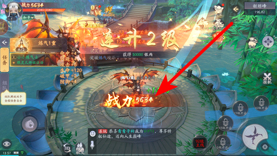 1、境界突破修炼:通过完成日常任务积累修为值,历经九重天劫突破境界桎梏,每次突破都将解锁全新功法与能力,踏上更高层次的修炼之路。