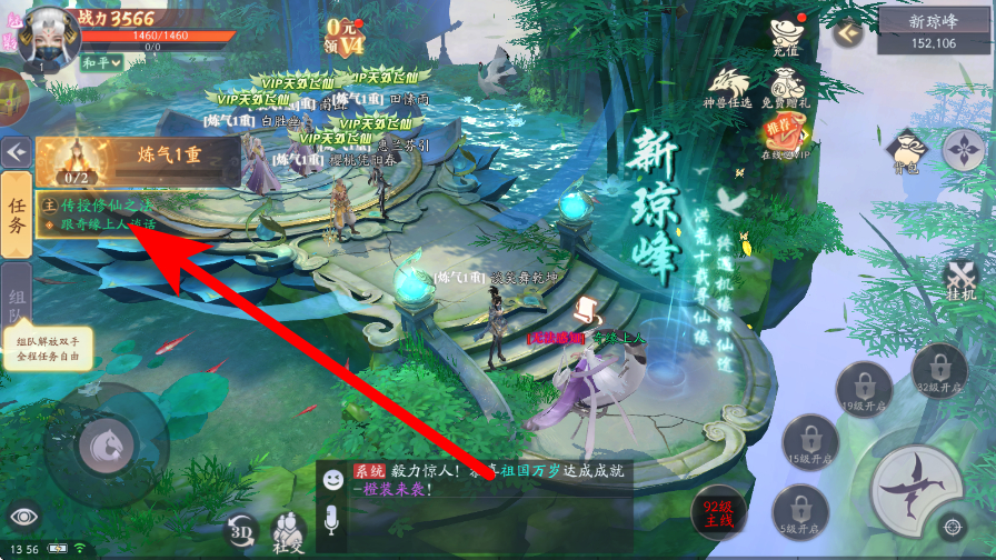 3、接着跟随主线,在其中找到主线任务提示,按照指引前往指定地点完成任务,推进仙侠冒险的进程,沉浸体验仙侠世界的故事与奇遇。
