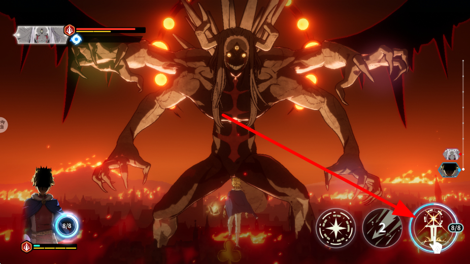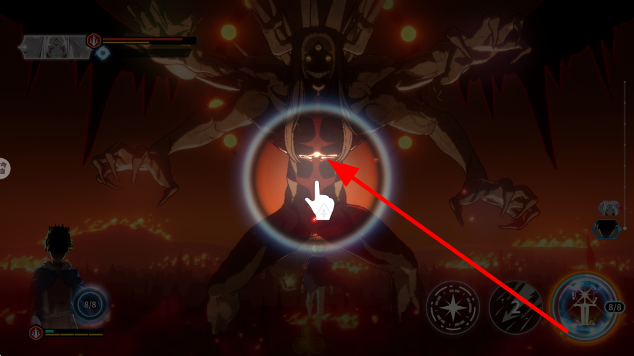 4、攻击时,要瞄准敌人的关键部位,如图中魔神的特定区域,点击该部位,可让攻击更具针对性,提升伤害效果,更高效地击败敌人。