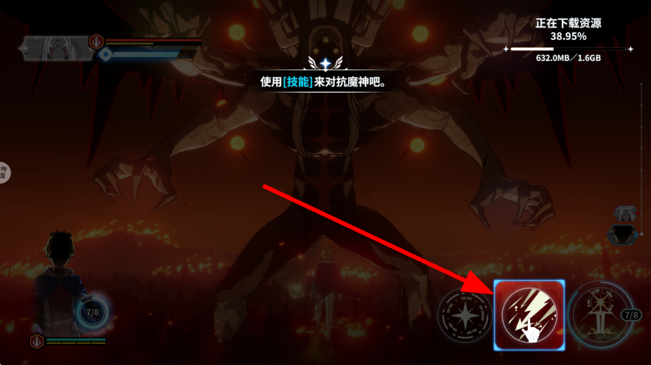 1、对抗魔神时,界面会提示使用技能,点击对应技能图标,角色将释放技能攻击魔神,借助技能的威力对魔神造成伤害,推进战斗进程。