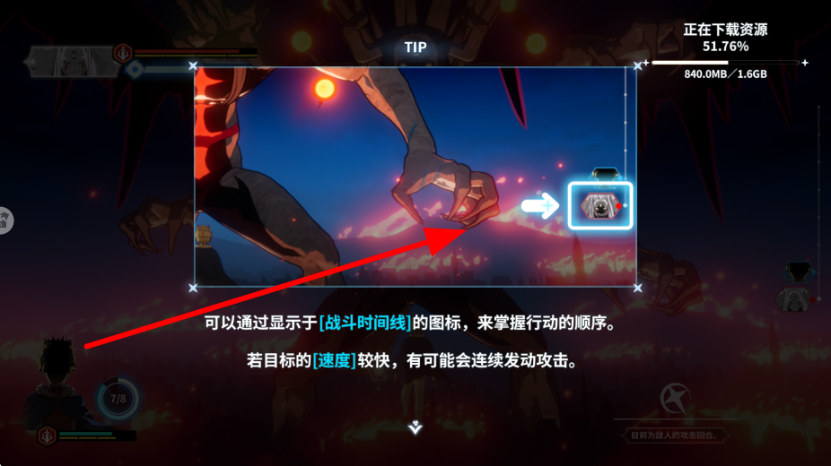 2、战斗中,可通过显示在战斗时间线的图标,掌握行动顺序,若目标速度较快,有可能会连续发动攻击,需留意这一机制,做好应对准备。