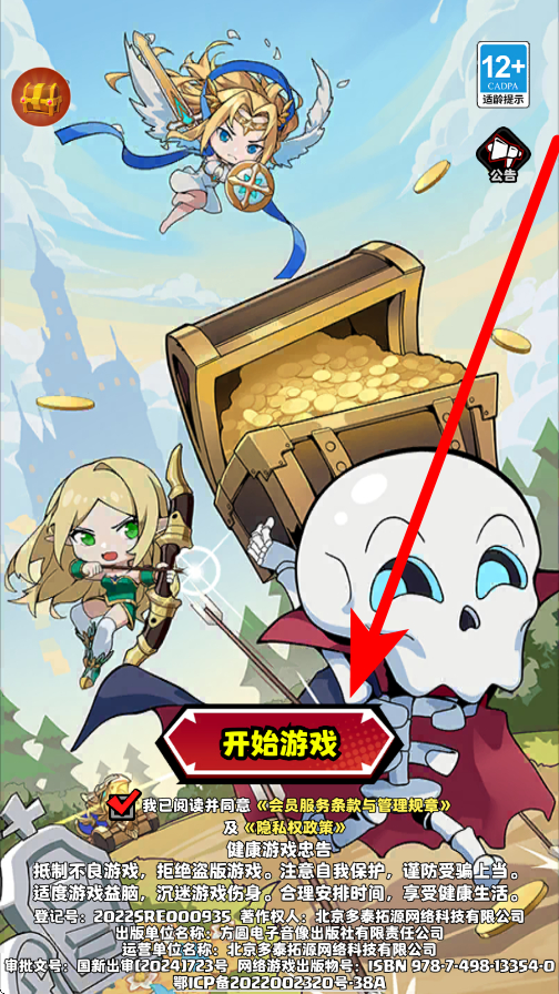 1、新玩家首先开启,在界面中找到开始按钮选项,点击后进入游戏,开启一段冒险战斗的旅程,准备迎接后续的任务与挑战。