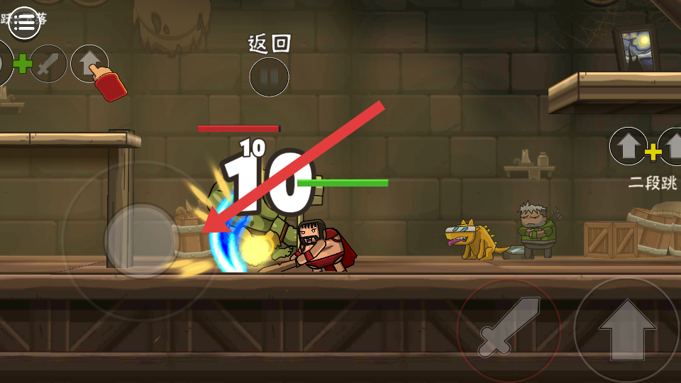 1、先熟悉基础移动与跳跃操作,点击屏幕左侧方向键控制角色左右移动,点击右侧跳跃按钮完成单次跳跃,跨越较高障碍物。