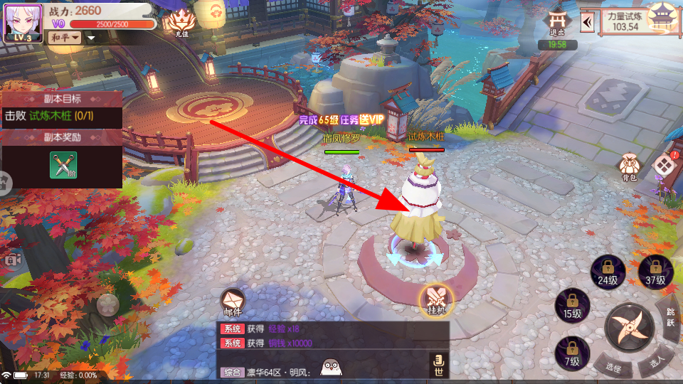 3、攻击试炼挑战,对试炼木桩等目标发起攻击,完成击败目标,提升角色战斗能力,获取试炼奖励。