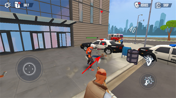 1、战斗中灵活利用场景中的警车、建筑等掩体,这是规避伤害的关键操作,移动时结合掩体位置规划路线,保持安全状态。