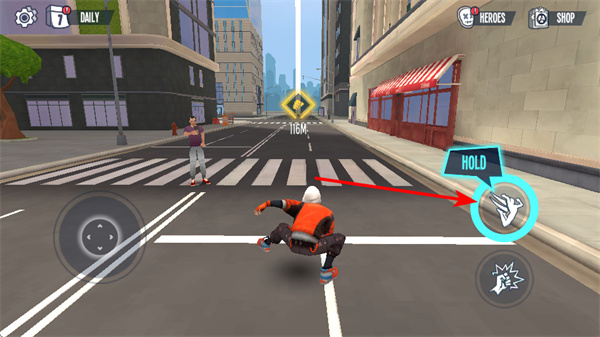 3、在城市场景中,查看被袭击的敌人,这是角色移动与技能释放的基础操作,需根据场景距离合理把控长按时长。