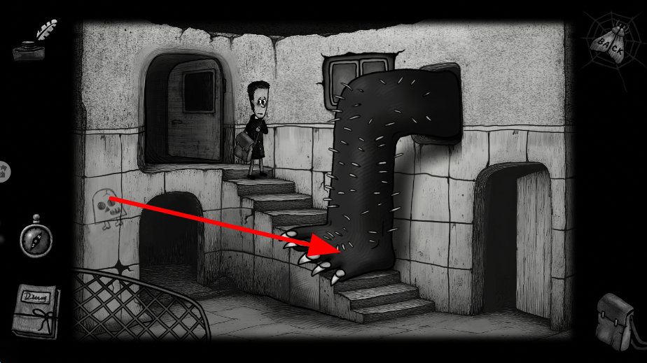 1、玩家首先用手指点击场景中的区域,控制角色移动,在不同的房间与场景间穿梭,探索怪物之家2的世界,寻找线索与道具。