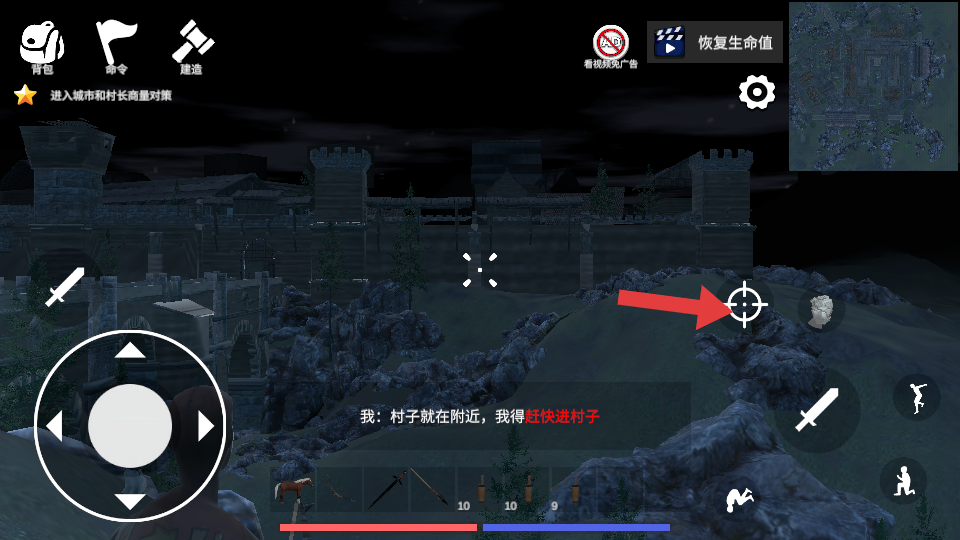2、当收到进入城市和村长商量对策的任务提示时,操控骑马角色前往城市入口,靠近城门后自动的触发进入动画。