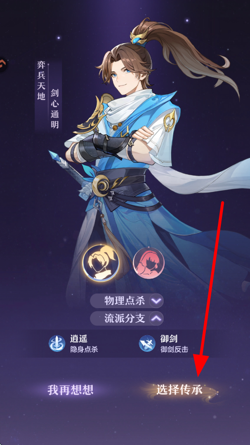 2、流派传承方面,选定宗门后,会有不同流派分支,如弈剑的逍遥、御剑等流派,各有独特能力,玩家可根据战斗需求等,点击选择传承,确定自身发展方向。